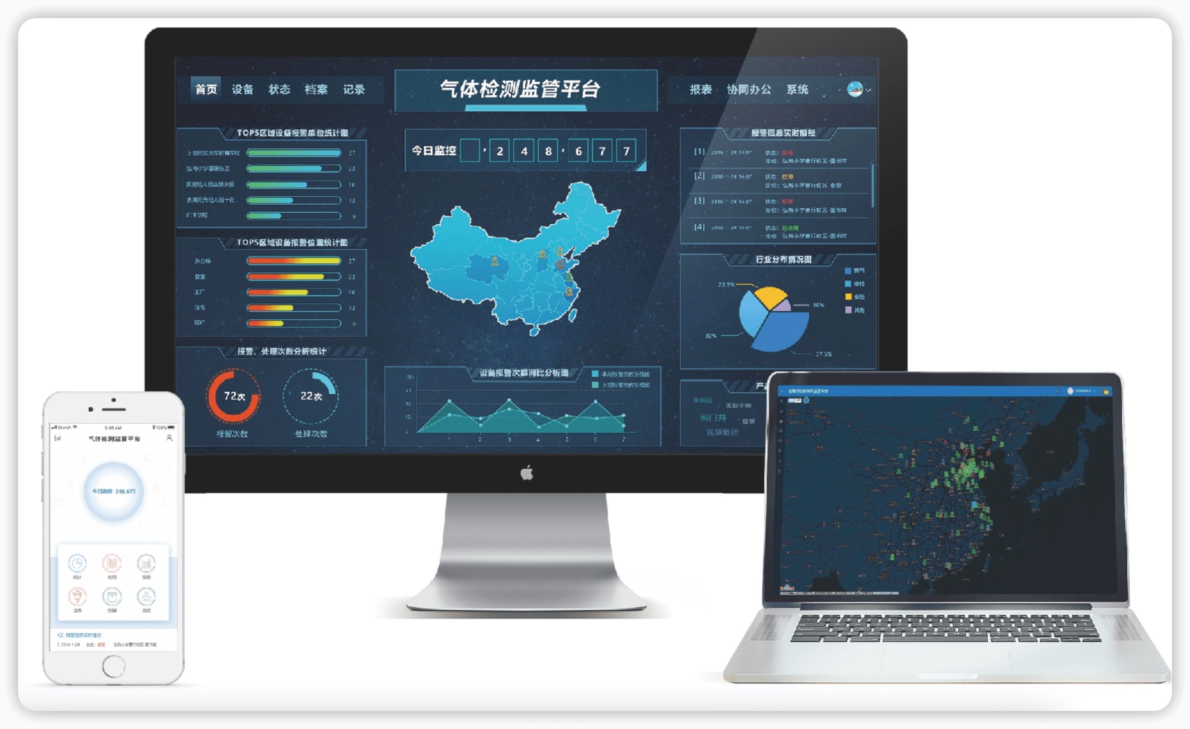 我公司自主研發的氣體檢測監管平臺(APP、PC、微信、大屏監控等),可對氣體行業電子產品進行配接監管。 設備信息實時上傳,平臺可查看配接設備的位置和設備的運行情況,實時查看設備運維記錄。有實際操作權限,可以增加新設備和授權旗下用戶的權限分配,并且可以監督運維單位處理設備問題。